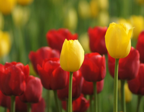 描述郁金香是百合科郁金香属的多年生草本植物,具鳞茎。条状披针形至卵状披针状,花单朵顶生,大型而艳丽,花被片红色或杂有白色和黄色,有时为白色或黄色,长5-7厘米,宽2-4厘米,6枚雄蕊等长,花丝无毛,无花柱,柱头增大呈鸡冠状,花期4-5月。