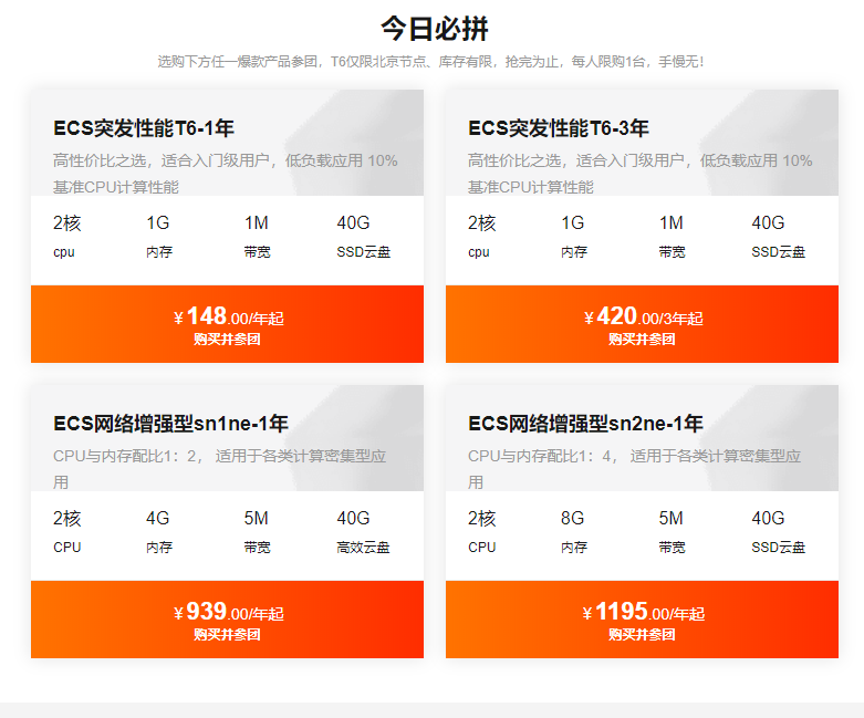 这是阿里云的拼团的链接,服务器的价格,下图仅供参考:购买最新阿里云服务器可以看(及时更新):https://www.yangqq.net/alilyunpintuan.html